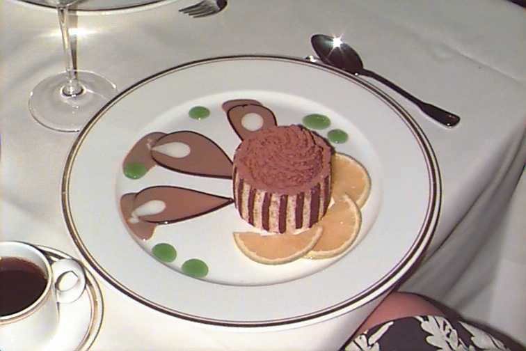 Delice de Chocolat Blanc et Noir et sa Sauce au Cafe - $10 Black and white chocolate cake with coffee English custard |